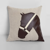 Selle Français is named after the renowned French sport horse known for its grace and athleticism. This 18" x 18" euro cushion captures that same spirit—crafted in a refined mix of leather and canvas, it features the detailed head of a horse with reins delicately rendered across the front. A tribute to equestrian elegance, it brings the poise of the saddle ring into your living space, where strength meets quiet sophistication.