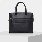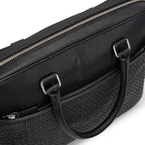 Handcrafted in Fluid Leather, the Down To Bussiness is a laptop bag with a single zip closure, nickel hardware and a Tiger Marrón Security Lock Mechanism. It has a neat poly-satin lining on the inside along with 2 interior pockets for a laptop and tablet. It also has a single zipper pocket on the inside for important items that need to be kept safely. Additionally, It also has 2 exterior zipper pockets. The laptop bag is accompanied with a detachable shoulder strap and the back leather strap converts it into an Add-a-Bag sleeve that easily fits onto your carry on luggage.