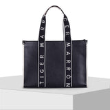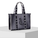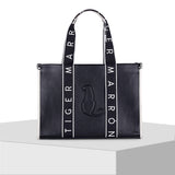 This Large Mid Night Mama Tote is a part of the trio Tiger Family tote collection. It is a large sized tote made of vegan leather. Its efficient to carry essentials like Phone, tablet, Laptop, diary, book, charger, etc. It can be styled both as a holiday tote or a shoulder handbag. This tote bag includes a pouch that can hold essentials and a utility zippered pocket that can keep your wallet safe.