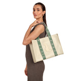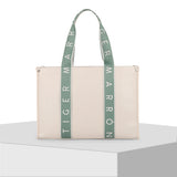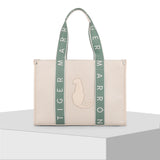 This Large Sage Tiger Mama Tote is a part of the trio Tiger Family tote collection. It is a large sized tote made of vegan leather. Its efficient to carry essentials like Phone, tablet, Laptop, diary, book, charger, etc. It can be styled both as a holiday tote or a shoulder handbag.
