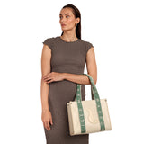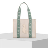 This Midi Sage Tiger Youth Tote is a part of the trio Tiger Family tote collection. It is a medium sized tote made of vegan leather. Its light weighted and can carry essentials like Phone, tablet, diary, book, charger, etc. It can be styled both as a crossbody sling or a shoulder handbag.