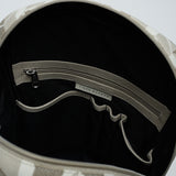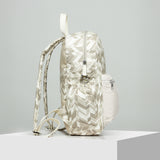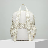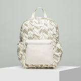 Handcrafted in Drum Dry Milled Leather and Printed Canvas, the School's Out is a casual backpack with a single zip closure secured with a Tiger Marrón Security Lock Mechanism, nickel hardware and 2 adjustable shoulder straps. It has a neat poly-satin lining on the inside along with a laptop, tablet, mobile & passport pocket, a single zip pocket with keychain & pen slots and an exterior single zipper pocket. The back leather strap converts it into an Add-a-Bag sleeve that easily fits onto your carry on luggage.