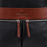 Handcrafted in Natural Dry Milled Leather, the Too Cool for School is a sturdy backpack with a two-way zip closure, nickel hardware and 2 adjustable shoulder straps. It has a neat poly-satin lining on the inside along with 4 interior pockets and 2 easy access outer zipper pockets in the front. The back leather strap converts it into an Add-a-Bag sleeve that easily fits onto your carry on luggage.