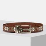 Handcrafted in Natural Dry Milled Leather, the Below the Belt is a suave reversible belt with nickel hardware. One side of the belt has a combination of blue and black for whenever you want to be a little extra. When reversed the other side is a plain black for your formal functions.